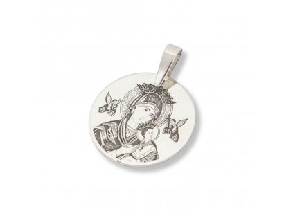 Strieborný medailón Sedembolestná Panna Mária Šaštínska Strieborný prívesok medailón Sedembolestnej Panny Márie patrónky Slovenska s jemným textom Sedembolestná Panna Mária...